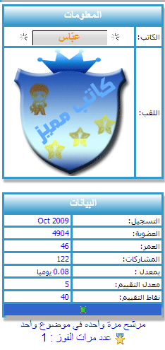 حدث معي هذا على منتدى عزيز بالاسم وبالرمزية دخلته بناء على دعوة من أحد أعضائه حاورته على منتدى آخر وما أظن إسهاماتي في إثراء محتواه ومستوى نقاشاته دونية وسأتيح لقارئي فرصة الحكم على ذلك من خلال رابط لكل المواضيع التي أسهمت بكتابتها أو بنقاشها على صفحاته :